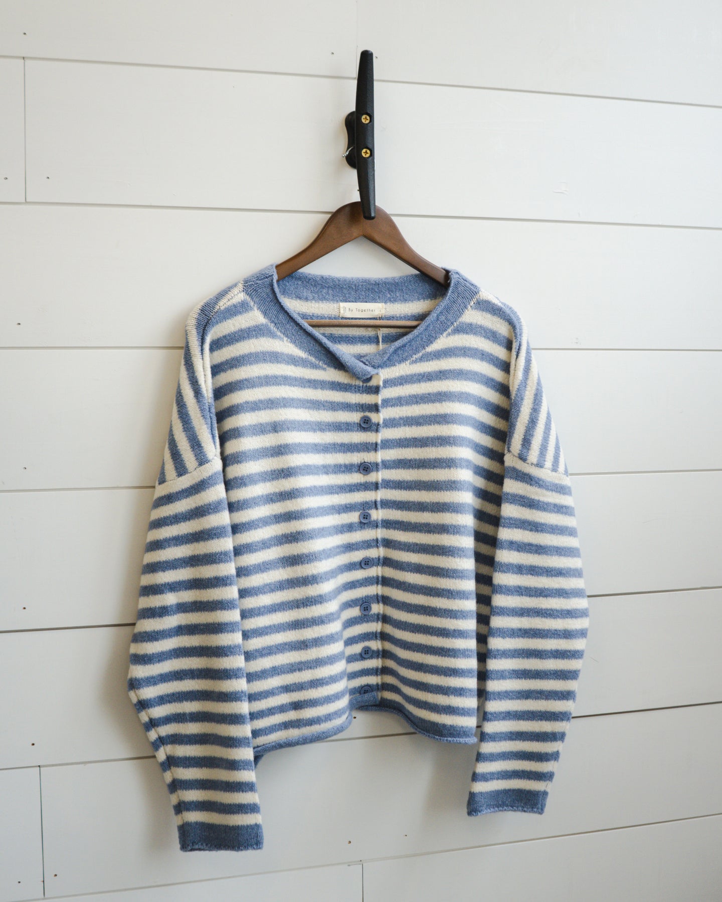 New! These super soft knit sweaters are a must have! This cardigan features button down with light blue stripes. Pair this top with your favorite pair of jeans or skirt, this will be your new favorite!
