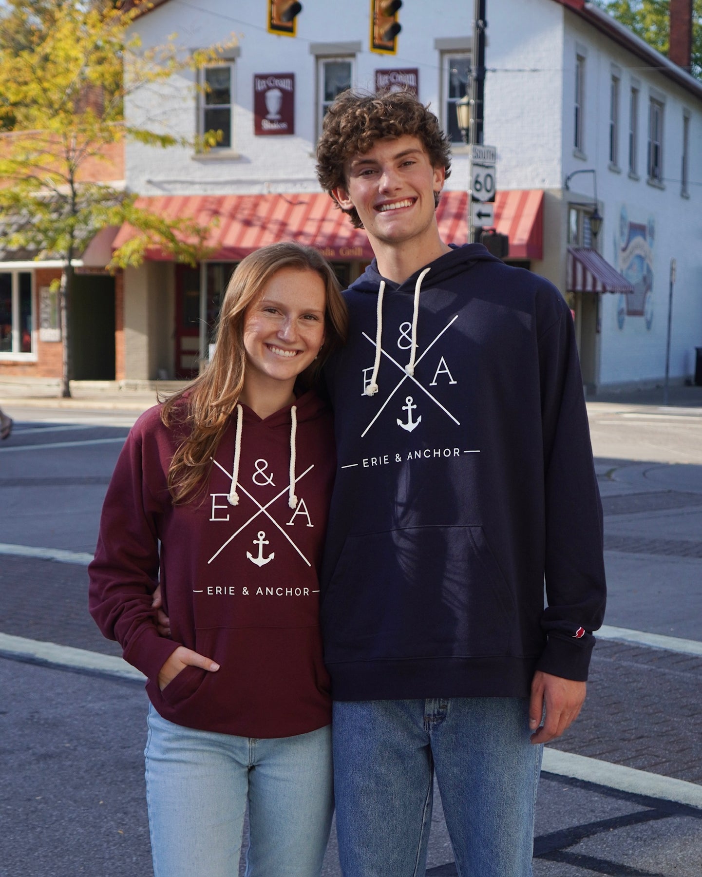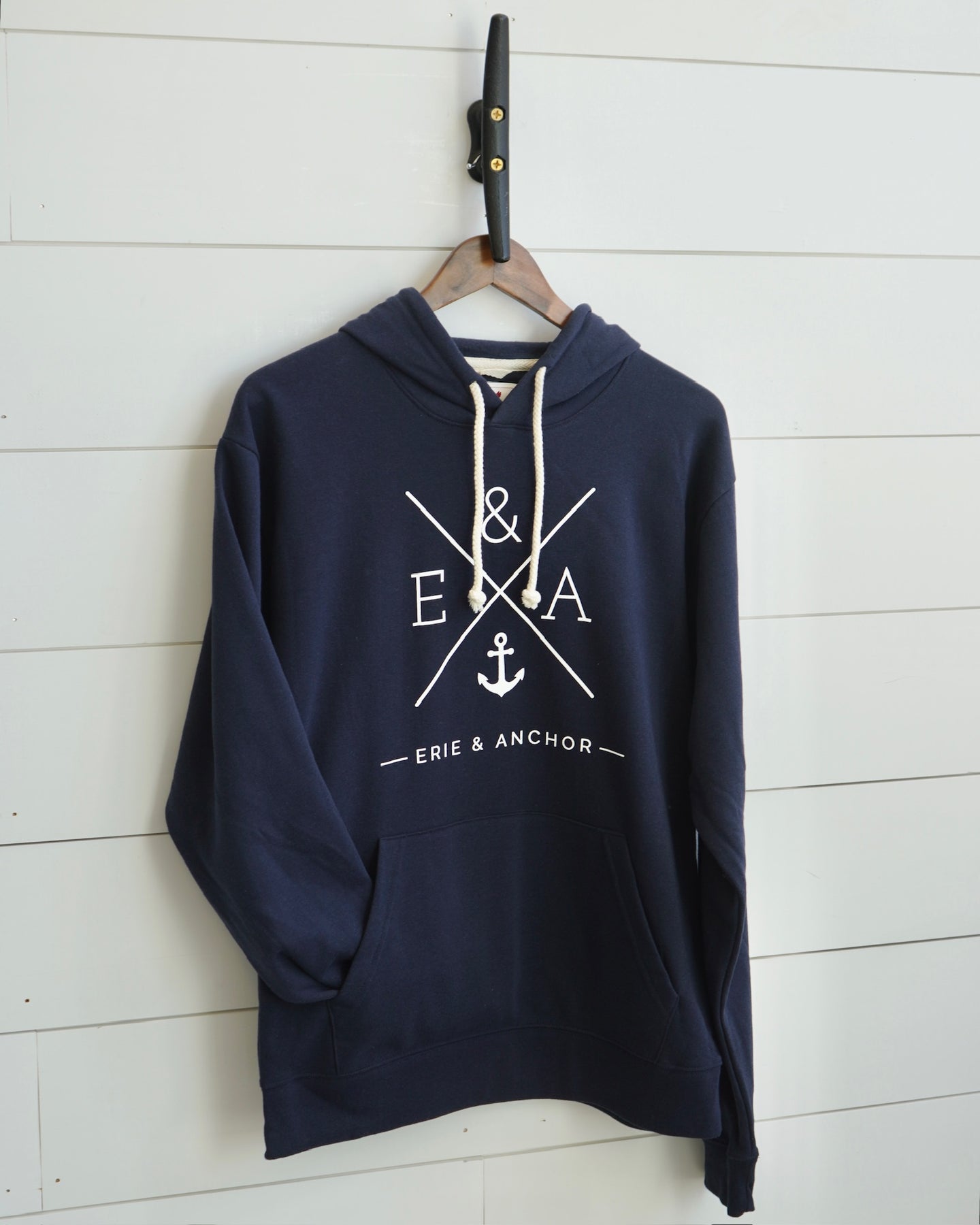 New! This unisex tri-blend fleece hoodie features our crosswinds design in white.  Perfect to support local and a great way to have a keepsake if you are just visiting.  These are made of an ultra-soft blend of fleece and can be worn on their own or layered up when the temps drop.  This unisex hooded sweatshirt is what you will need for a day spent time in our small town on a great lake!